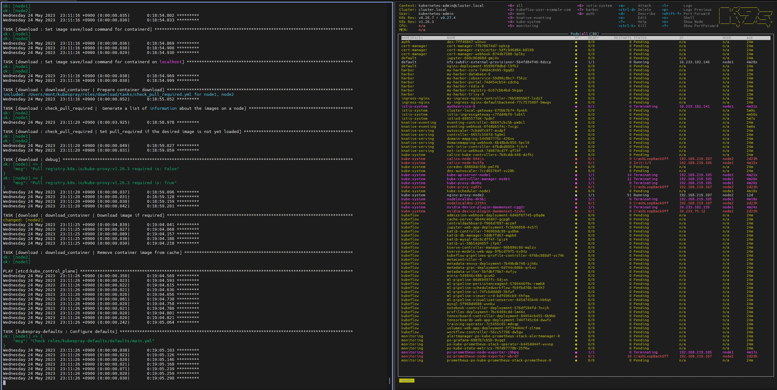 ansible-playbook -i inventory/mycluster/hosts.yaml --become --become-user=root -K cluster.yml비밀번호 입력하면 노드 추가하는 과정을 진행한다.